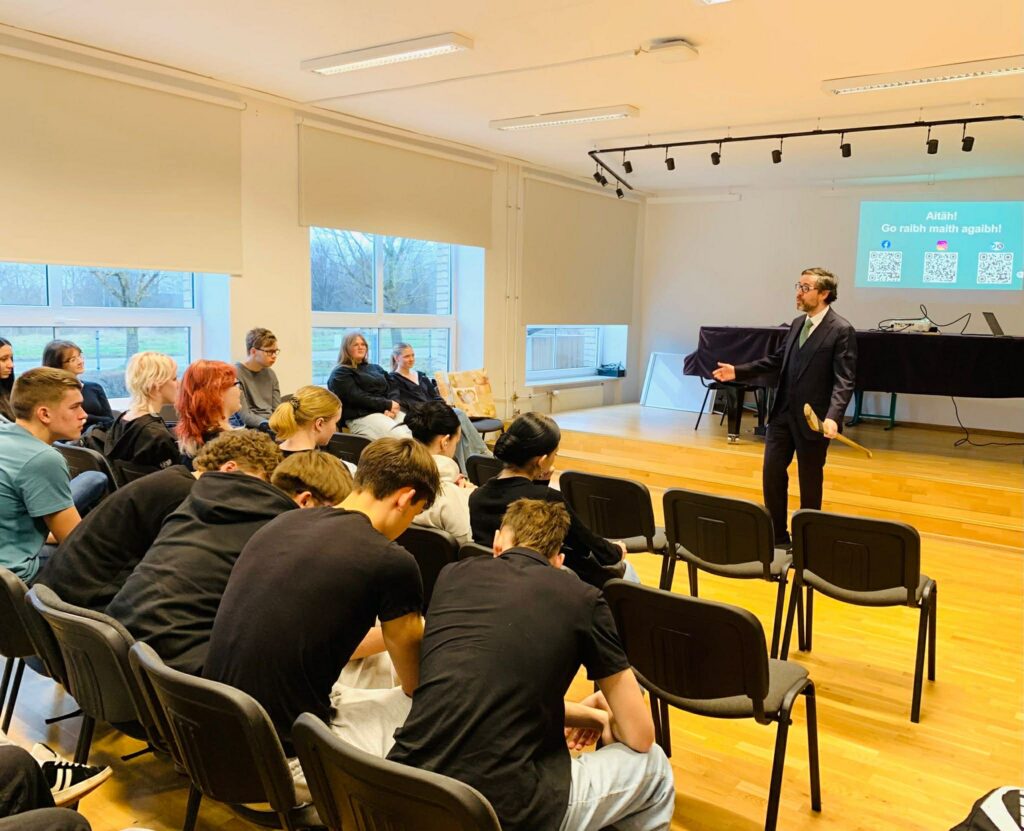Täna oli 10.–12. klassi õpilastel võimalus kuulda põnevaid lugusid Iirimaast. Koolil oli heameel võõrustada Iirimaa suursaadikut James Sherryt ning tema saatjat, MTÜ Diplomatic Relations projektijuhti Helen Uusi. ![]()